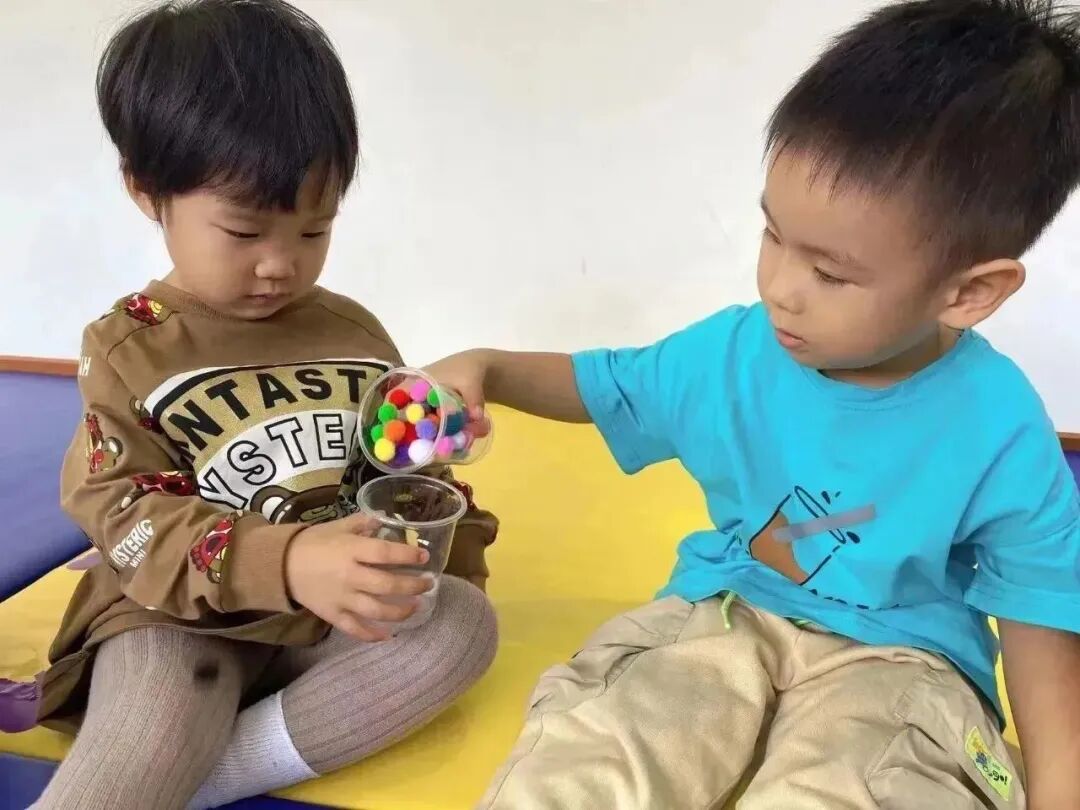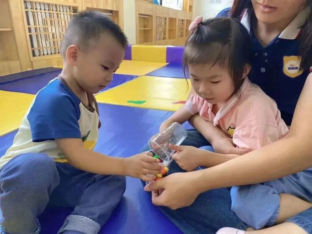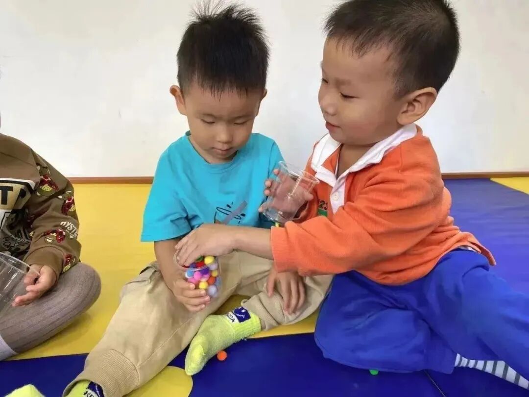 通过互动游戏合力运球、杯子运球,锻炼幼儿的合作能力,发展幼儿的平衡能力、手眼协调能力,提升幼儿的专注力。